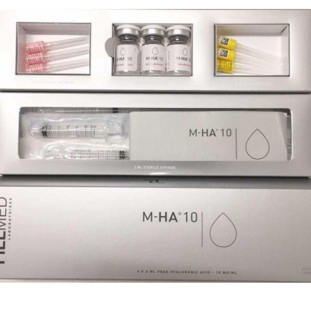 M-HA®10 ist eine viskoelastische Lösung, die den durch Hautalterung verursachten Hyaluronsäureverlust ausgleicht. Sie wird als „Haut-Booster“ in die obere Dermis injiziert, um die Feuchtigkeitsversorgung, Ausstrahlung und Elastizität der Haut zu verbessern und kleine Fältchen wie Krähenfüße, Lachfalten oder rauchbedingte Falten um den Mund aufzufüllen. Sie verbessert die Wasserbarriere der Haut.