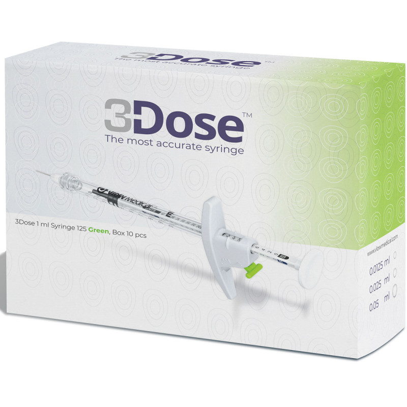 3Dose Next Generation BoNT dosing Syringe – 125 (Green) 1ml Dose Injector