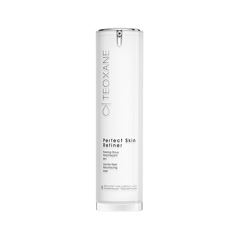 Un soin avec 10 % d’acide glycolique pour favoriser le processus de renouvellement cellulaire pendant la nuit, associé à l’acide hyaluronique résilient RHA.