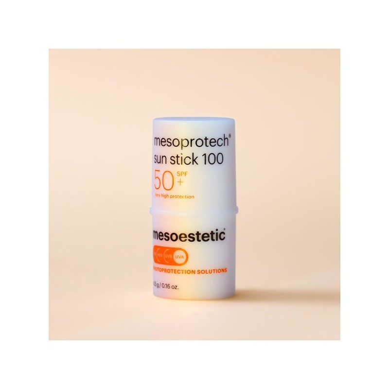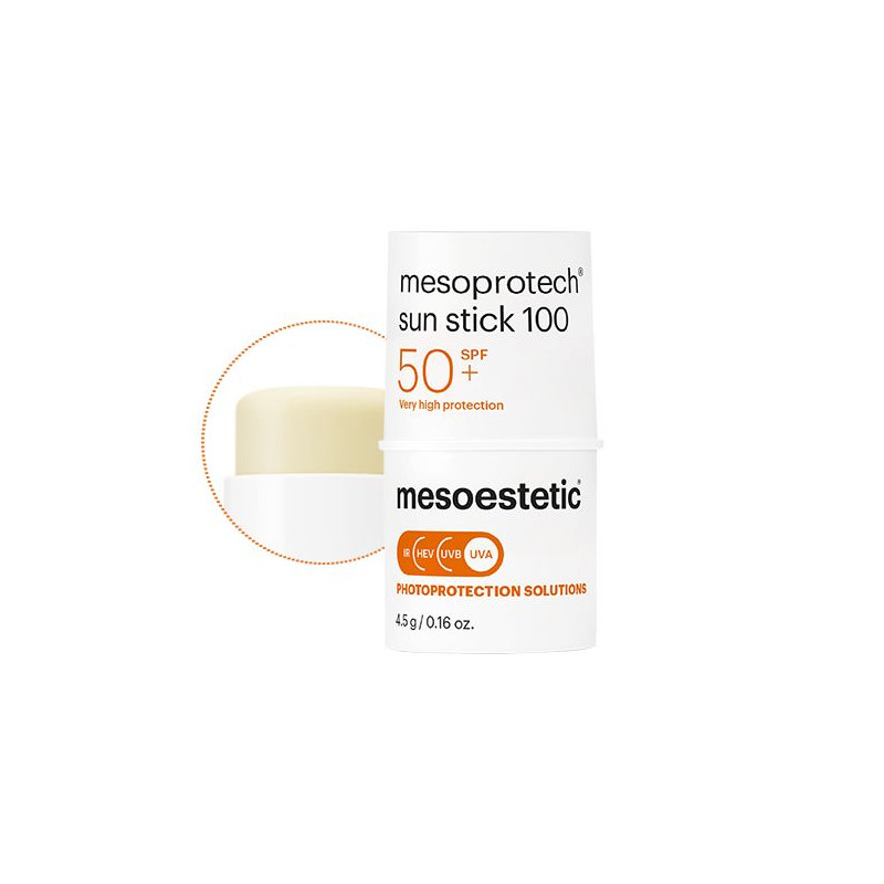 4,5g Stick photoprotecteur SPF 50+ à l'action réparatrice, indiqué pour les zones sensibles et adapté à tous les types de peau, qui protège le contour des yeux et des lèvres, ainsi que les cicatrices et les taches